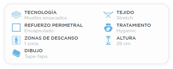 El modelo Sunset Spring es la combinación ideal de soporte y frescura con muelles ensacados, que se adaptan a tu cuerpo y proporcionan una sensación inigualable.